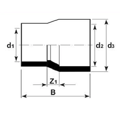 Size (d₃ × d₂ × d₁) – Connection sizes at each end (e.g., inlet/outlet).
